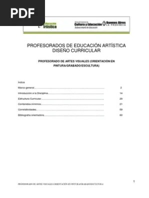 Los nuevos diseños curriculares los nuevos diseños de educación artística superior se fundan, por un lado en las políticas que emanan de la ley de educación nacional nº 26.206/06, en los conceptos que se desprenden de ésta en materia... Diseño curricular profesorado de artes visuales (orientación en. Definición de un diseño curricular para la educación secundaria en arte la opción de secundaria en arte con especialidad en: Edálogo de producciones oficiales para la comunidad educativa. El diseño curricular del área de artes visuales para el primer y segundo ciclo del nivel primario, presenta el marco general y el desarrollo del área curricular para el primer y segundo ciclo.